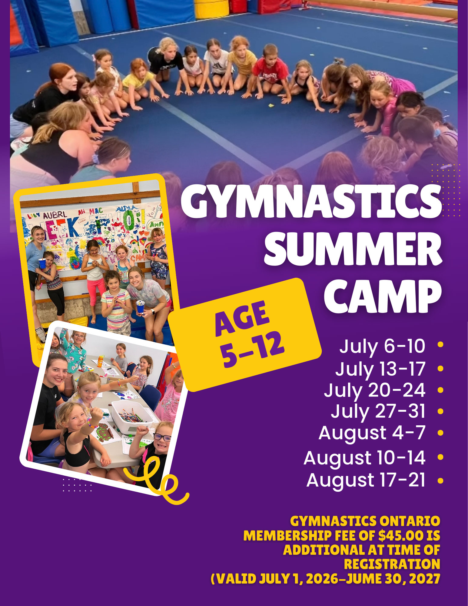 2. The registration fee includes membership with Gymnastics Ontario.